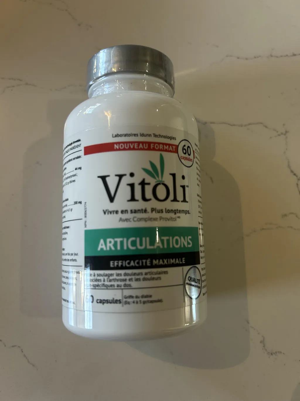 Medicinal Ingredients: (Each capsule contains standardized ingredients) Provitol, Olive Extract (Olea europaea, fruit)…………….44 mg (standardized to 12% hydroxytyrosol; 80:1 equivalent to 3.52 g of selected olives). Devil's Claw Extract (H. procumbens, root)………..200 mg (20-25:1 equivalent to 4 to 5 g of dried root). Non-medicinal Ingredients: Microcrystalline cellulose, magnesium stearate
